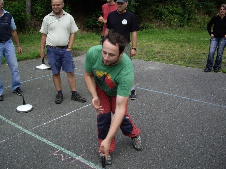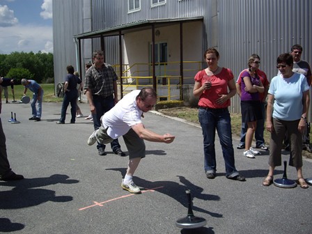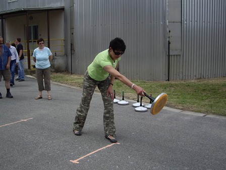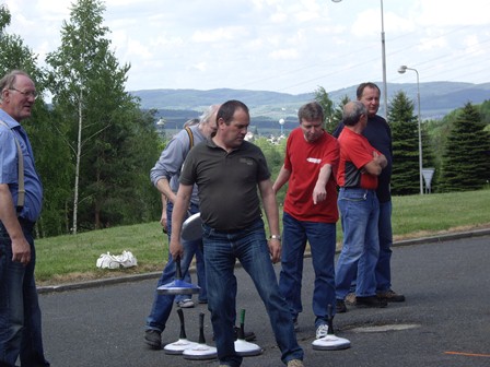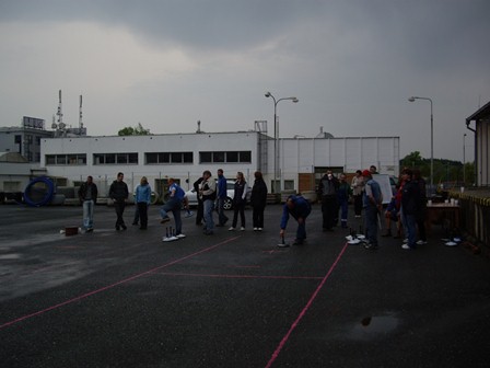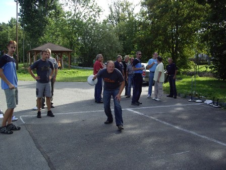 1. místo: Provoz Jindřichův Hradec Za krásného odpoledne jsme se sešli k „bratrovražednému“ boji mezi provozními středisky oblasti východ akciové společnosti ČEVAK. Turnaje se zúčastnila čtyři družstva – dvě za Jindřichův Hradec a další za Třeboň a Dačice. Zájem ze strany pracovníků ČEVAK byl velký, a tak jsme vytvořili rozšířená družstva o šesti členech. Díky dobrému povrchu cest v objektu čistírny odpadních vod jsme nebyli nuceni příliš zkracovat dráhy, ale ukázalo se, že některým borcům (zejména ze střediska Dačice) ani poměrně dlouhá dráha nebránila odhazovat kotouče daleko za cíl. Po počátečních váháních, co a jak vlastně s těmi kotouči dělat, se boj rozvinul naplno i se všemi strategickými finesami. O lepších hodech rozhodovaly občas pouhé centimetry, dokonce i milimetry! Nakonec zvítězilo družstvo provozu Jindřichův Hradec ve vyrovnaném finále s družstvem Dačic. Galerie: 1 2 3 4 5 6 7 8 9 10 11 12 13 14 15 16 17 18 19 20 21 22 23 24 25 26 27 28 29 30 31 32 33 34 35 36 37 38 39 40 41 42 43 44 45 46 47 48 49 50 51 52 53 54 55 56 57 58 59 60 61 62 63 64 65 66 67 68 69 70 71 72 73