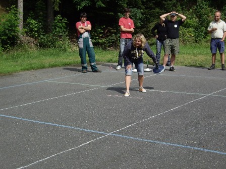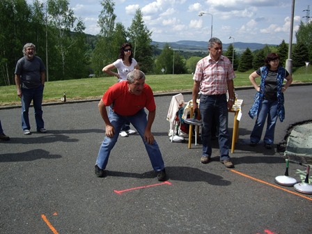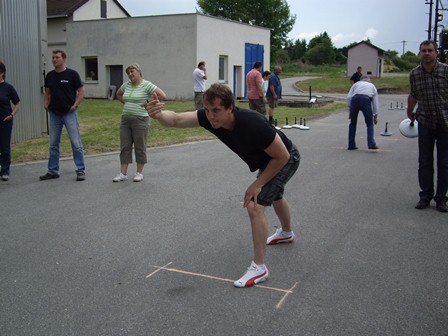 1. místo: Igorovci Po špatné zkušenosti se zrušeným 1. termínem pro metanou, který byl 3. května a v Jesenici, kdy bylo kolem nuly a chvílemi padal sníh, jsme s napětím očekávali, jak dopadne náhradní termín – 15. červenec. Je to sice vrcholový letní měsíc, ale Šumava je přece jenom nevyzpytatelná. K nám ale byla milosrdnější než naše středočeská Jesenice. Bylo sice chladněji, chvílemi foukalo, ale déšť rozhodně nehrozil. I v čase likvidace škod po vichřici se sešlo 15 účastníků. Bez problémů jsme vytvořili 3 družstva, která si zahrála systémem „každý s každým“. Dráha byla téměř regulérní na celkem kvalitním asfaltovém hřiští základní školy v Chudeníně, a tak po krátkém seznámení se s pravidly se mohlo začít. Po počáteční nejistotě to dopadlo jako vždycky: taktizování, hecování, popichování vedlo k téměř heroickým výkonům, zejména při posledních hodech, které rozhodují výsledek hry. Ukázalo se, že taktika „nejlepší hráč družstva hází jako poslední“ se téměř stoprocentně osvědčila. Stejně jako se osvědčily výborné grilované klobásky a točené pivo po skončení hry. Galerie: 1 2 3 4 5 6 7 8 9 10 11 12 13 14 15 16 17 18 19 20 21 22 23 24 25 26 27 28 29 30 31 32 33 34 35 36 37 38 39 40 41 42