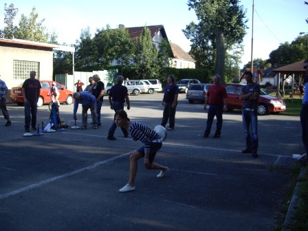 1. místo: Šmoulové Za krásného zářijového odpoledne proběhlo poslední základní kolo v metané vodohospodářských společností klatovského okresu. Scénař byl naprosto stejný jako ve všech ostatních případech: počáteční nedůvěra a rozpaky z neznámého sportu se velmi rychle změnily na bojový zápal, taktizování a vůbec všechno, co ke správnému sportovnímu boji patří. K hladkému chodu turnaje přispělo nemalou měrou i to, že kolegové z VaK Servisu vybrali výbornou asfaltovou plochu, která si v ničem nezadala s povrchem pro regulérní soutěže (což můžeme posoudit, protože jsme na takových hřištích již „metali“) a hra se jim opravdu dařila. (Později, když zápal ze hry dosáhl svého vrcholu, se jim dařilo tak dobře, že jsme měli obavy o osud aut na blízkém parkovišti, naštěstí žádné z nich nedoznalo úhony.) Schéma turnaje jsme volili svým způsobem hybridní, což se nedá dost dobře popsat, ale i přes velmi vyrovnané výkony výsledky byly jednoznačné – vyhráli Šmoulové, na 2. místě se umístili Běloši, na 3. místě Pumy a na 4. místě Černoši (samozřejmě nešlo o rasovou diskriminaci).Volba místa konání se ukázala jako skvělá i z hlediska blízkosti hospůdky, která borce průběžně osvěžovala chlazenými nápoji i výborným gulášem. Galerie: 1 2 3 4 5 6 7 8 9 10 11 12 13 14 15 16 17 18 19 20 21 22 23 24 25 26 27 28 29 30 31 32 33 34 35 36 37 38 39 40 41 42 43 44 45 46 47 48 49 50 51 52 53 54 55 56 57 5815. 07. 2011 - Chudenín - Karpianusová Eva